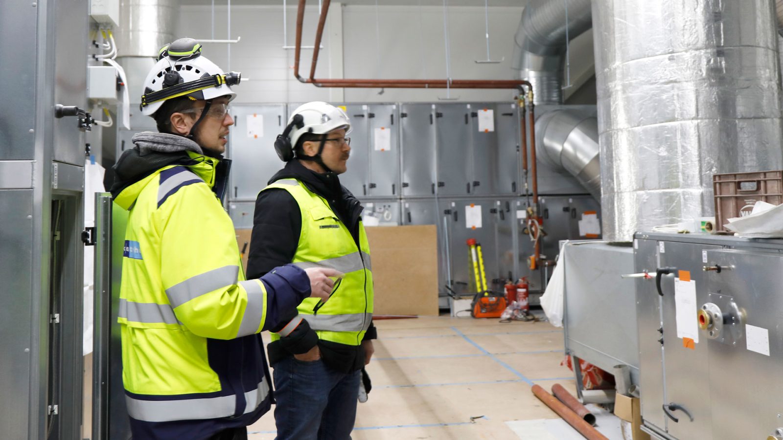 ”Kun jäähdytystä ei tarvita, laite kääntyy automaattisesti lämpöpumppu-toiminnolle, ja tällöin se tuottaa lämpöä putkistoihin. Näin voidaan vähentää ostettavan kaukolämmön tarvetta”, Jussinniemi kertoo.