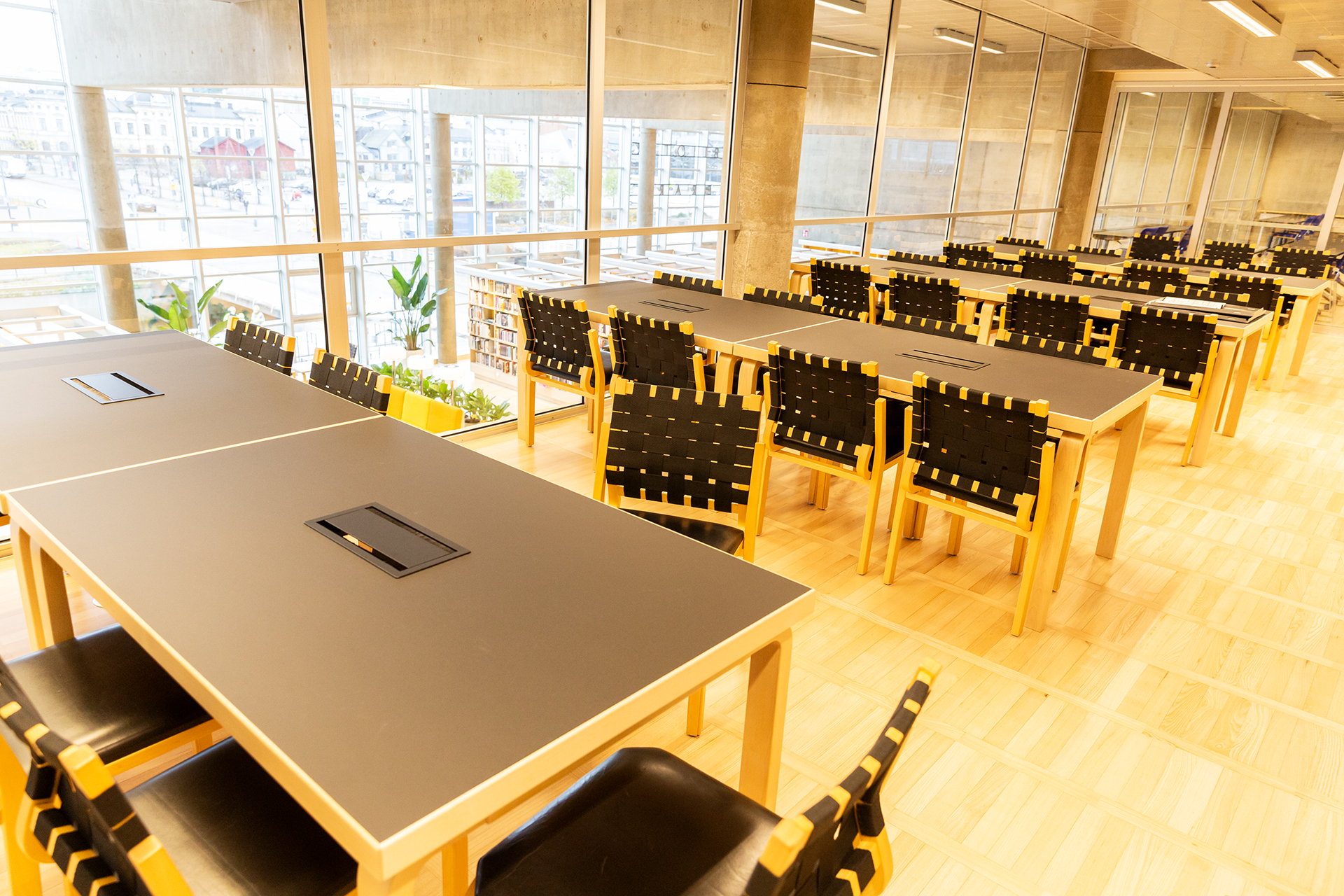 Kirjaston vanhaa sisustusta ja kalustusta on kunnostettu ja täydennetty samassa hengessä uudella.
