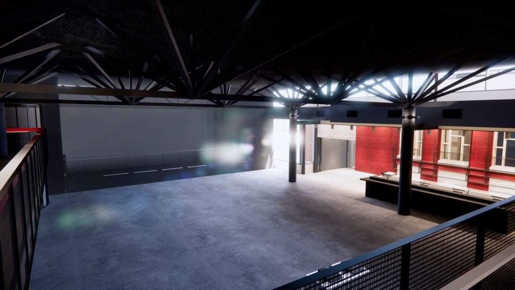 Roope Sulkala esittelee ylätasanteelta 1200 henkeä vetävää monitoimitilaa. Suoraa vastapäätä tulee esiintymislava. Kuva: Carita Forsman