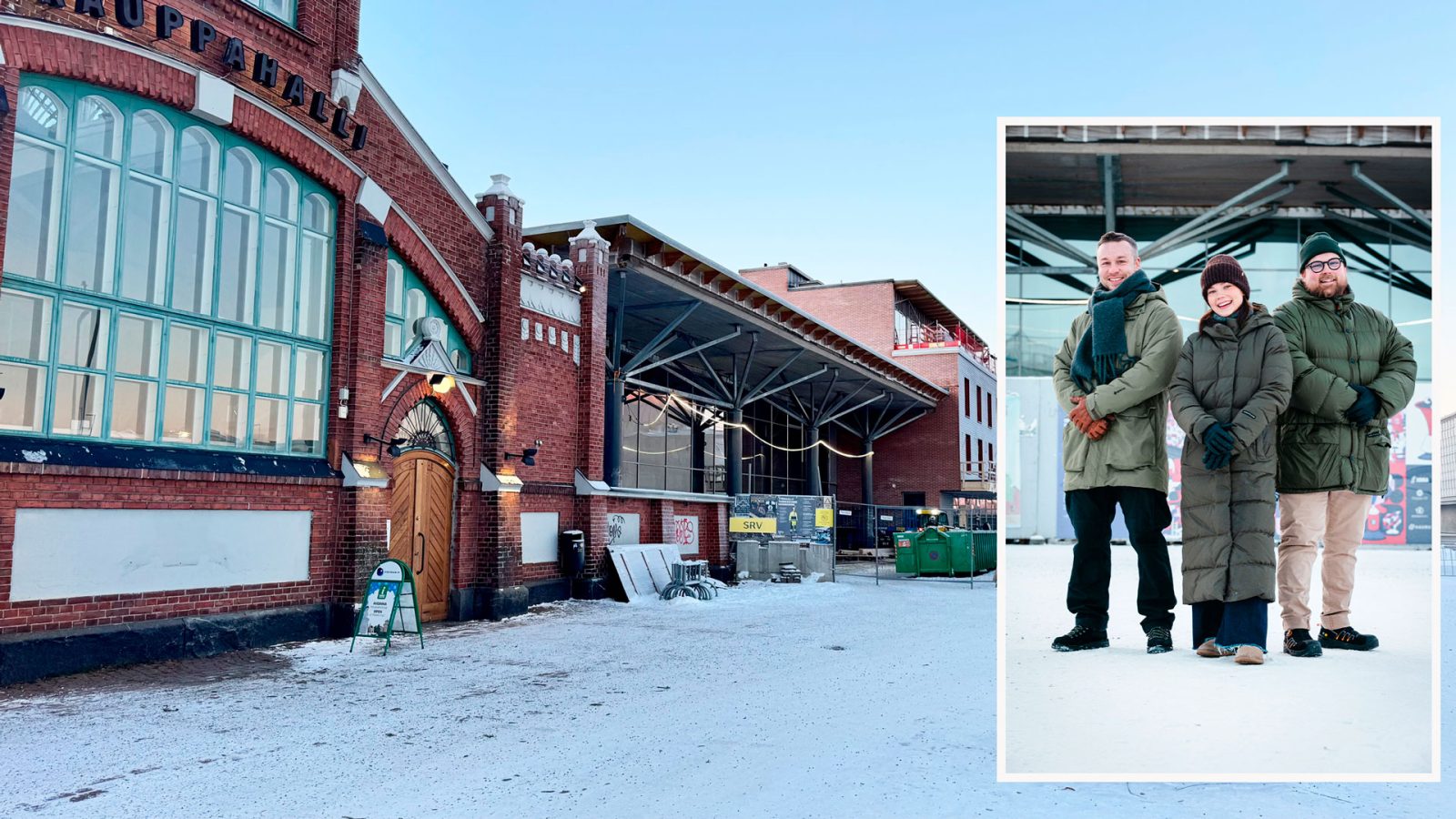 Uuden ravintola- ja konserttisali Tarkastamon uusi yrittäjäsukupolvi: Roope Sulkala, Liisi ja Leevi Forsman. Kuva: Mun Oulu/Työmaa