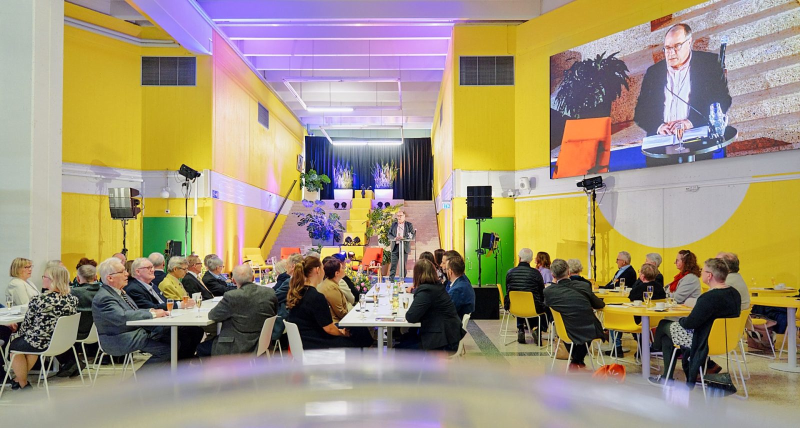 Oulun yliopiston alumnipäivä on perinteisesti sijoittunut Linnanmaan kampuksen keskusaulaan ja -ravintola-alueelle. Kuvassa rehtori Arto Maaninen pitämässä tervetulopuhetta 2025 tapahtumassa. Kuva: Mikko Törmänen