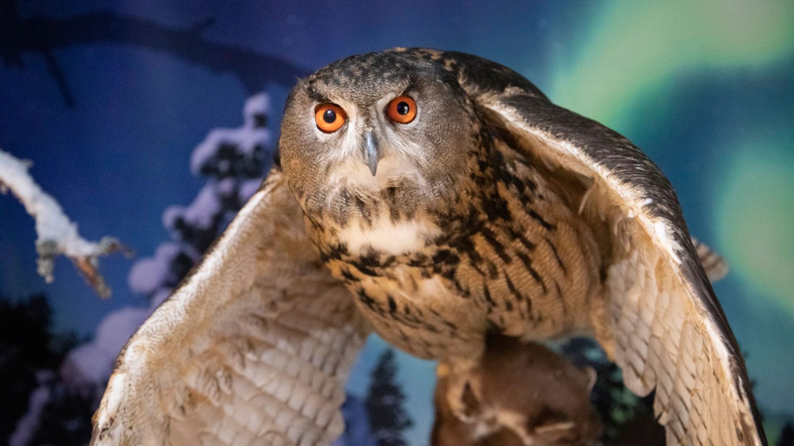 Pohjoisen luonto on täynnä selviytymisen ihmeitä ja uskomattomia tarinoita. Eläinten jäljillä -näyttely vie matkalle maailmaan, jossa eläimet ovat sopeutuneet ääriolosuhteisiin hämmästyttävillä tavoilla. Kuva: Intro Desing 2