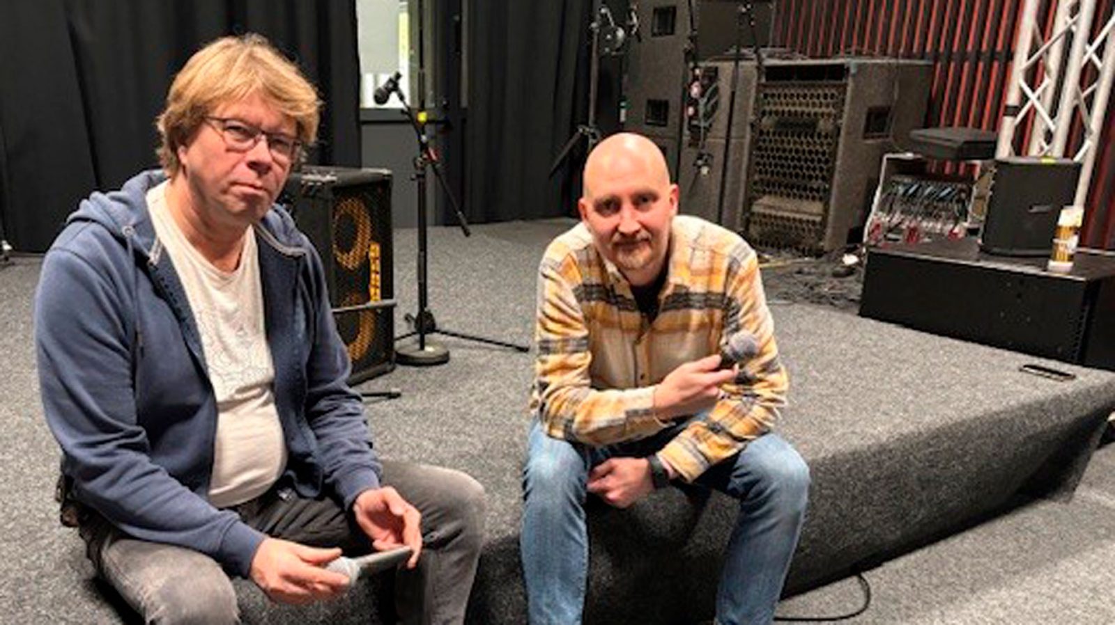 "Kirppiksellä on myös open stage ja kaikki lavalta löytyvät soittimet, äänentoistolaitteet sekä tarvikkeet ovat tietysti myytävänä", kertovat Matti Niemi ja Teemu Sarkkinen. Kuvat: Raimo Ahlroos