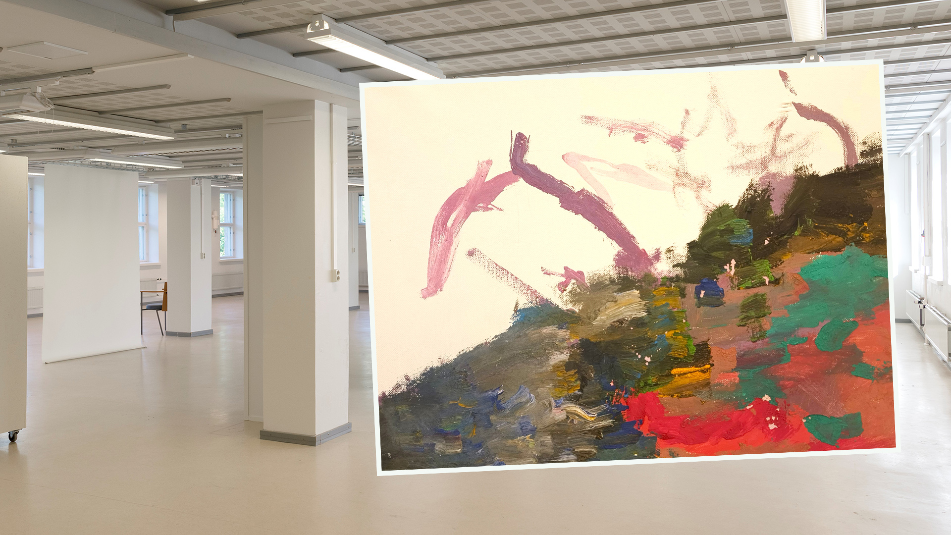 Pikigallerian yhteisnäyttelyyn tuleviin teoksiin kuuluvat muiden muassa Aaro Poikolaisen Dinosaurukset (vas. ylh.), Marjukka Hopialuodon Kukkaloistoa (alh. vas.) sekä Emma Paason Kehälläni.