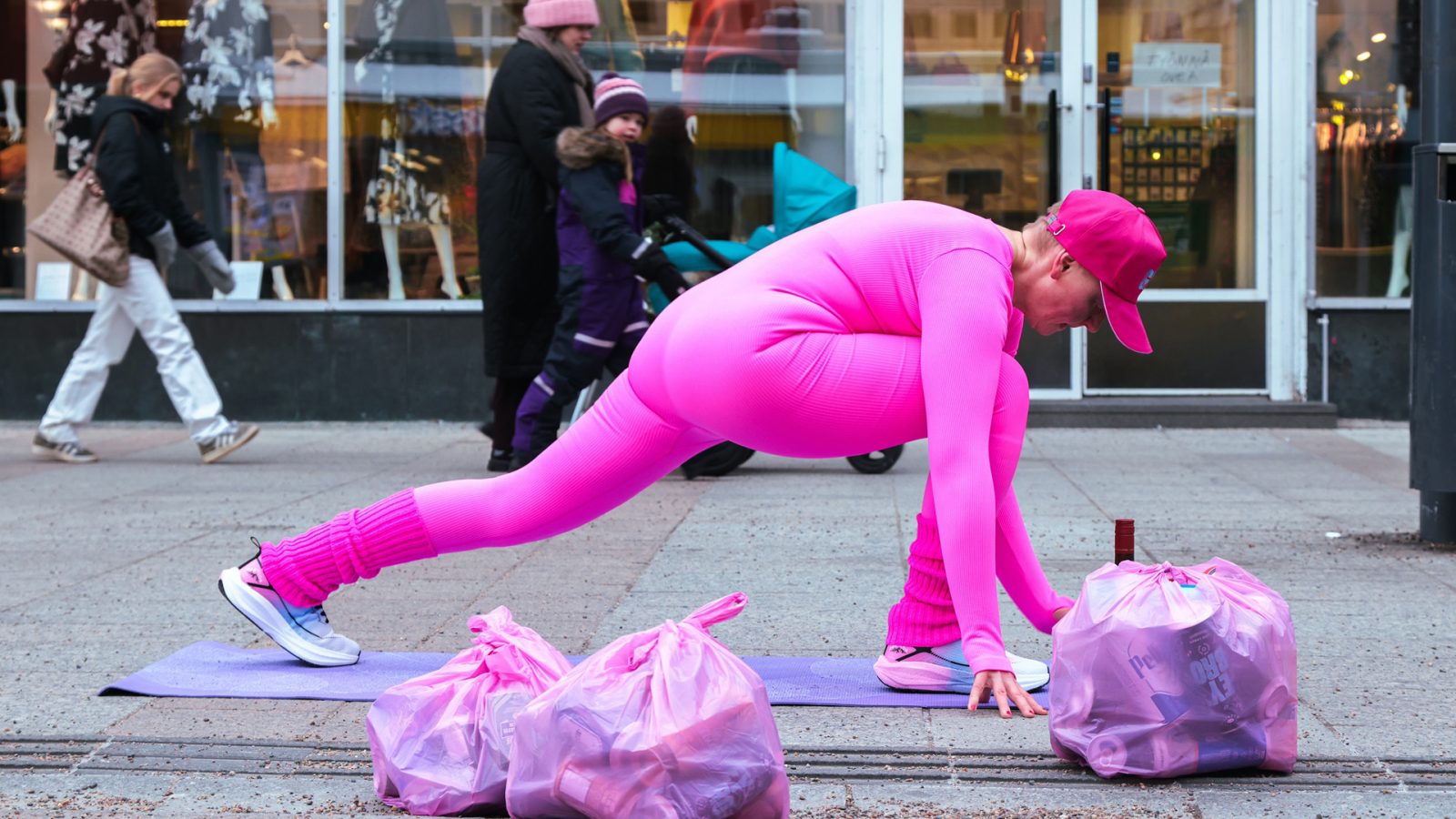Kuvassa Olga Prokhorovan performanssi Juoppo Joogaa. Kuva: Nikolai Sizikov