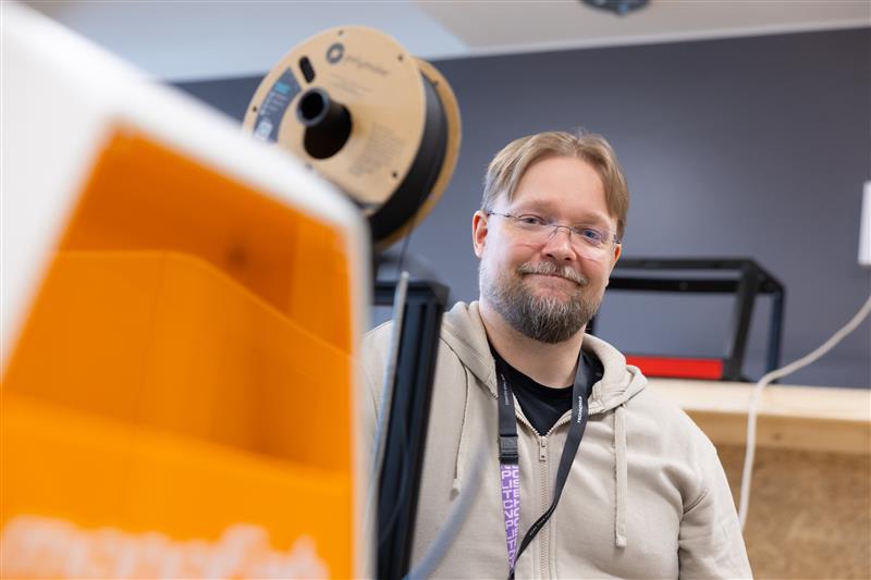 ”Välillä onnistutaan ja saadaan sellaista jälkeä, joka menee lopputuotteeseen ja välillä taas ei”, kuvaa asiantuntija Tapio Lappalainen arkea FabLabissa.